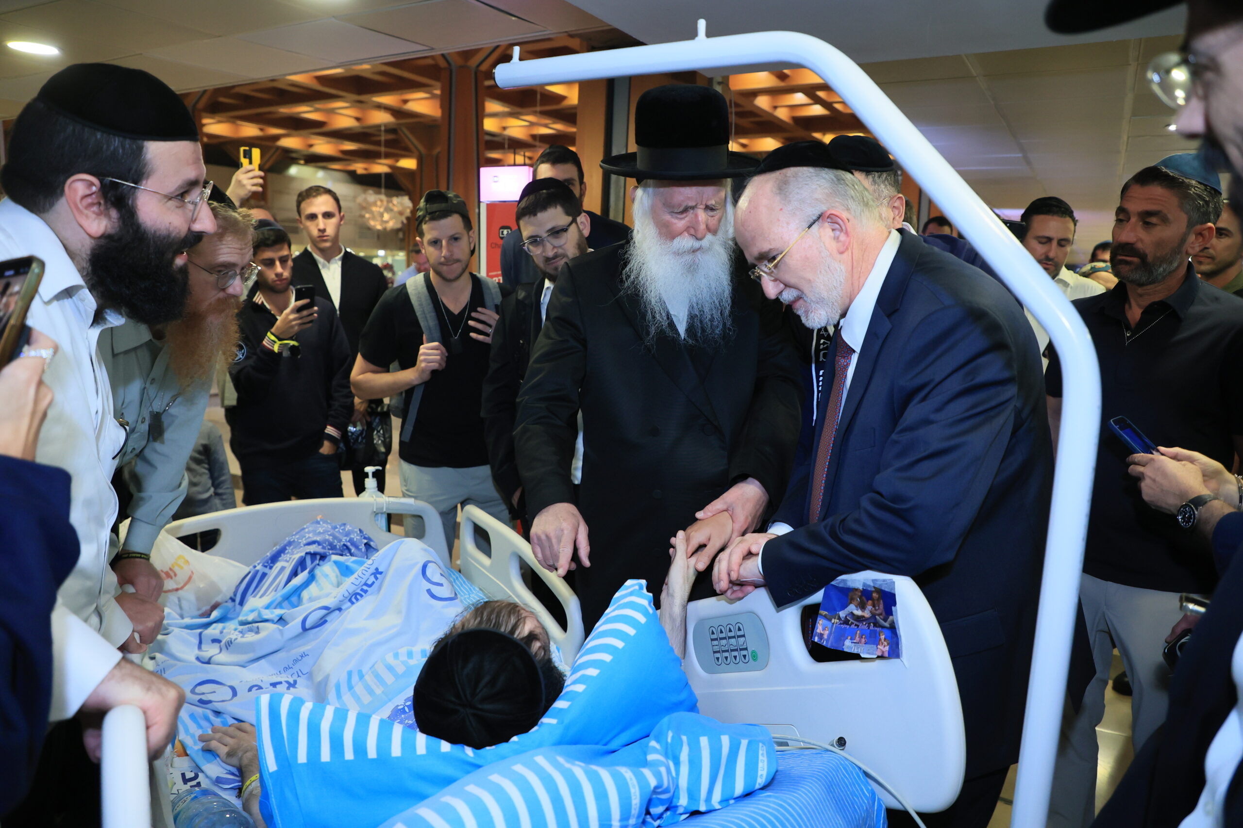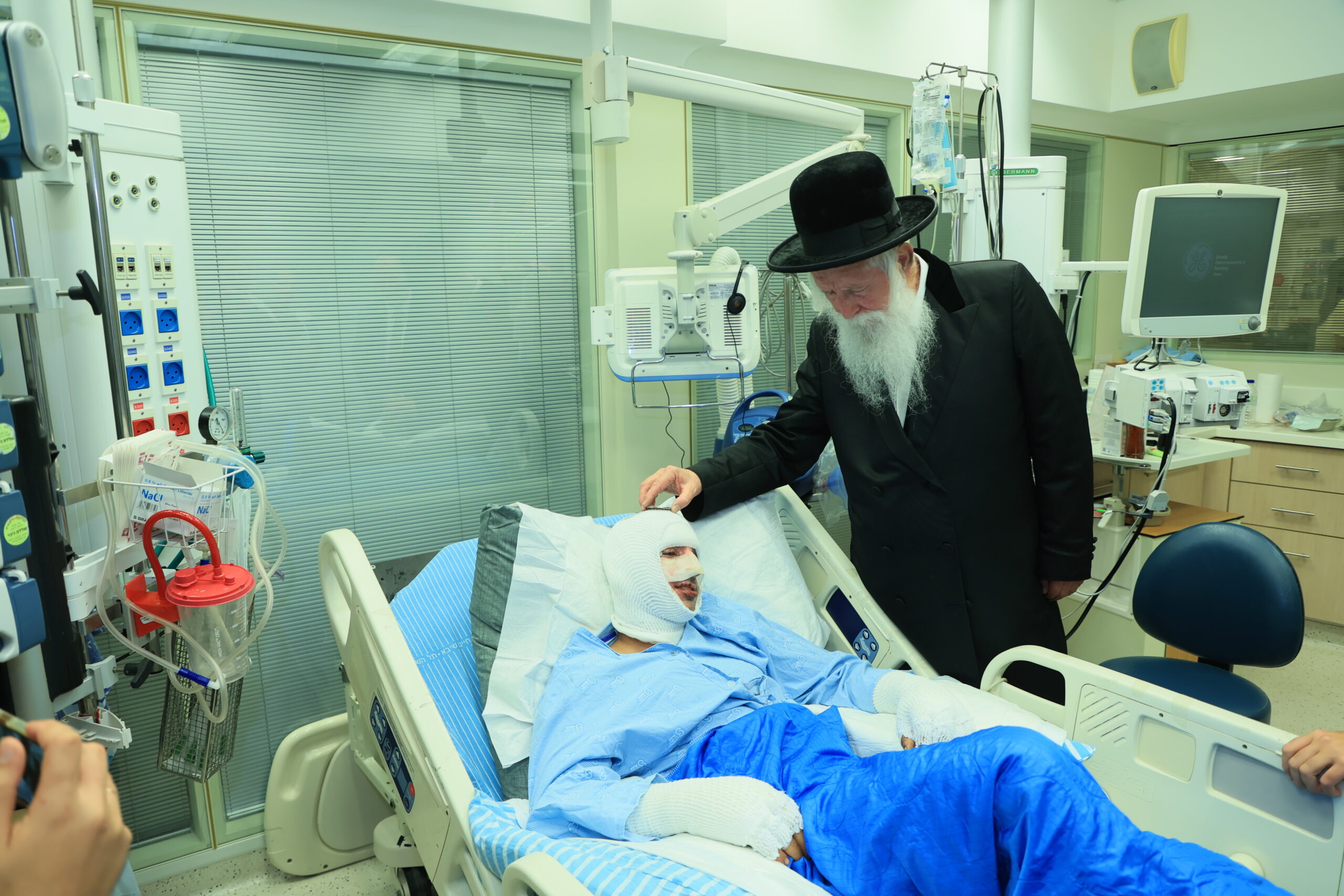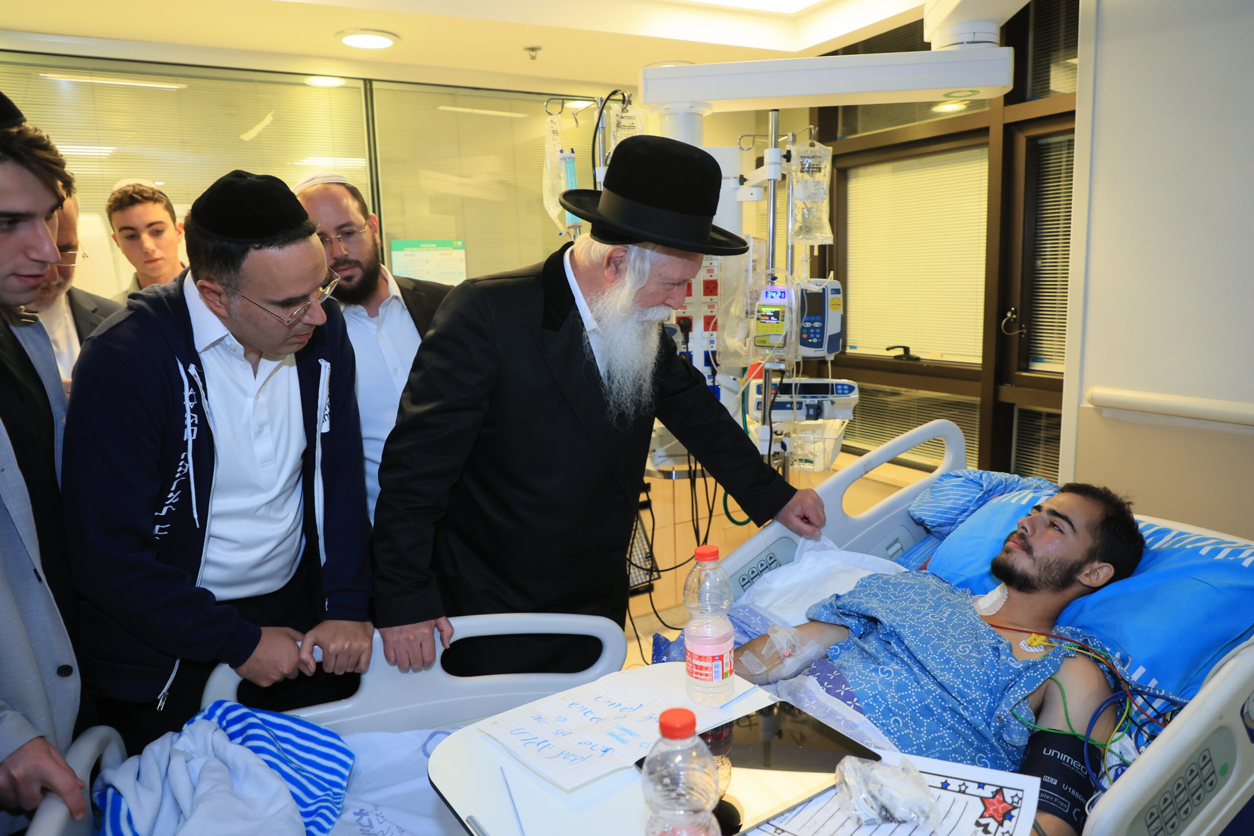 הרב גרוסמן הגיע לבקר את הפצועים בבית החולים שיבא תל השומר ועבר בין החדרים לברך לשלומם של הפצועים והחלמתם המהירה. הוא פגש את משפחות החיילים מקרוב, חיזק את ידם והפיכח בהם תקווה כי יקיריהם יחלימו במהרה.
