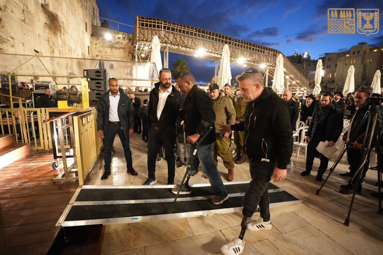 También asistieron Kobi e Idit Ohel, los padres de Alon, que fue secuestrado en Gaza, héroes de las FDI heridos y discapacitados que fueron heridos en la guerra y víctimas de las hostilidades, soldados de la 55.ª Brigada de Paracaidistas en el embalse junto con el comandante de brigada, coronel. Avi Haliva, supervivientes del Holocausto y muchos miles de personas que llegaron al Muro de las Lamentaciones.