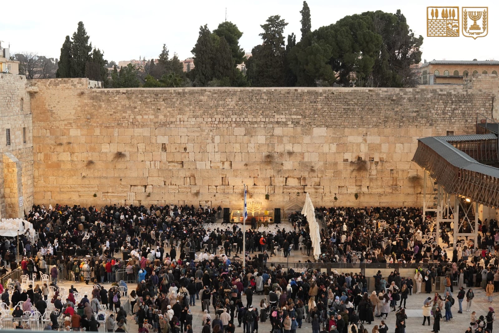El encendido tuvo lugar en presencia del Rabino del Muro Occidental y de los Lugares Santos, Rabino Shmuel Rabinowitz, el Alcalde de Jerusalén Sr. Moshe León y la Ministra de Transportes y Seguridad Vial, general de brigada Miri Regev.