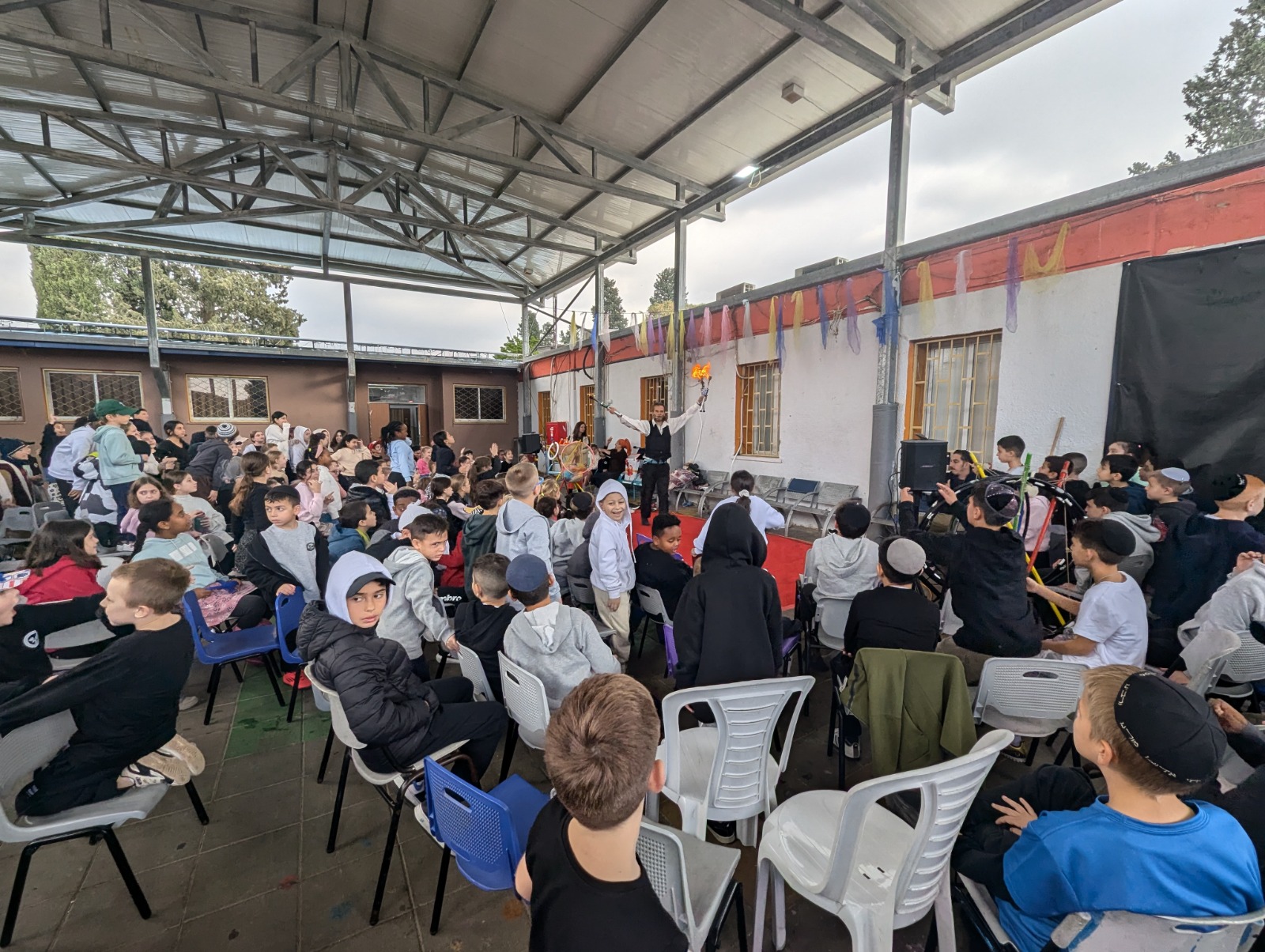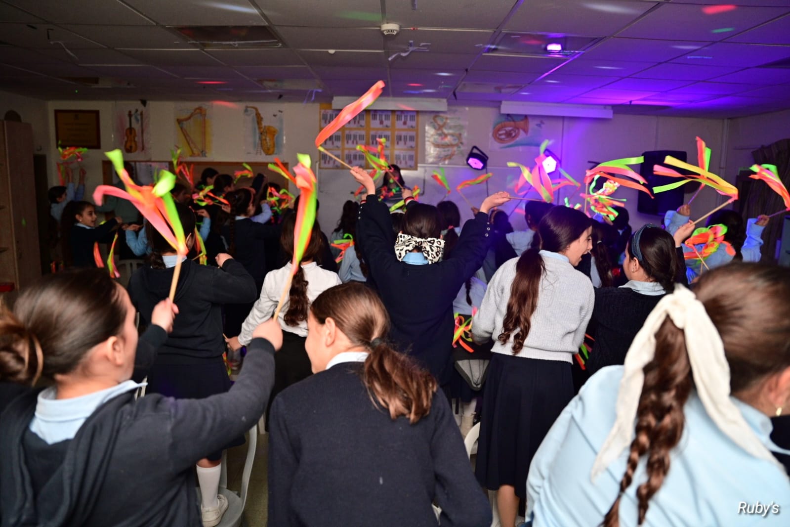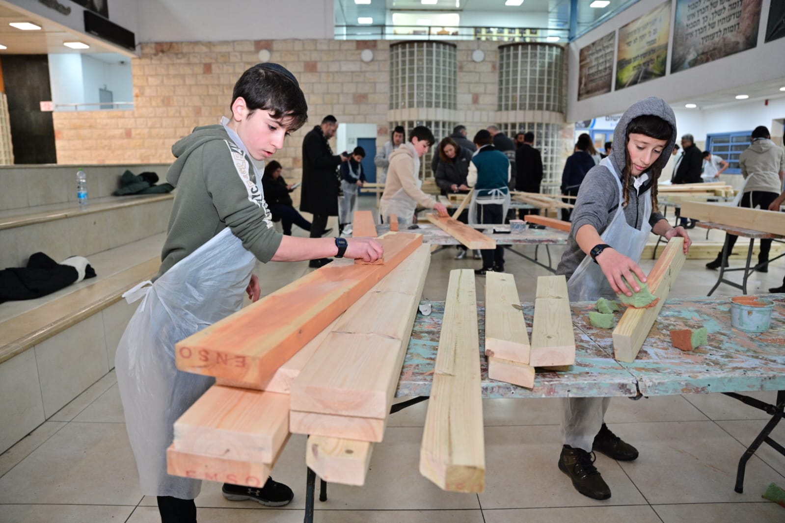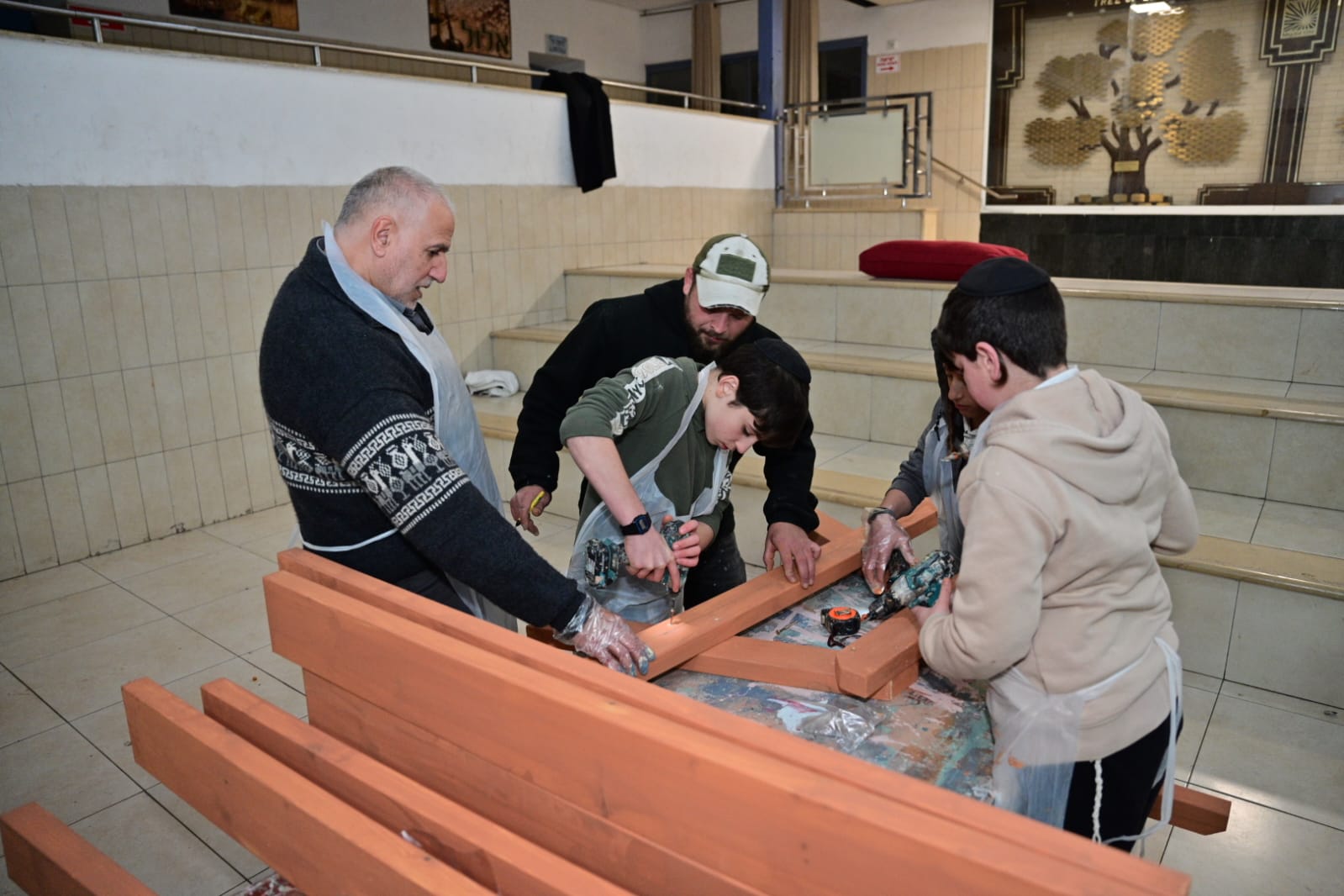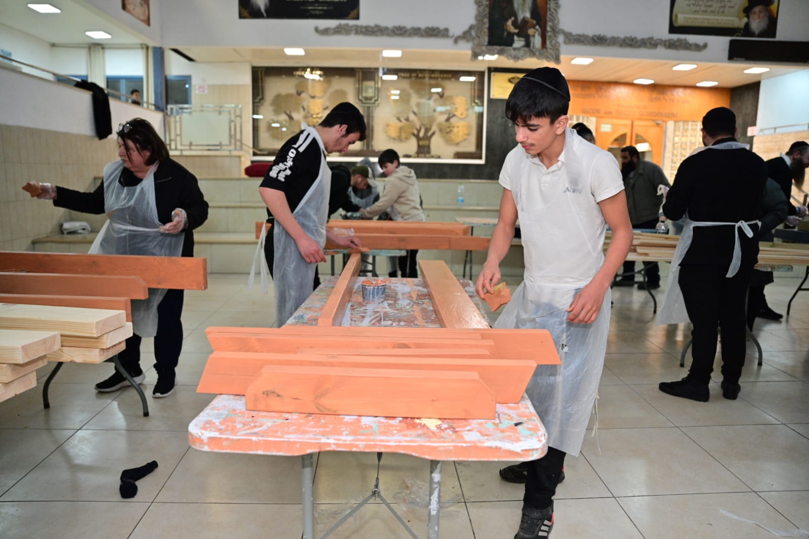 Los estudiantes construyeron con sus propias manos bancos, mesas KKL y columpios que se colocarán alrededor del patio del internado. Todos los artículos fueron diseñados y pintados en tono naranja en memoria de Kafir, Ariel y Shiri Biebs.